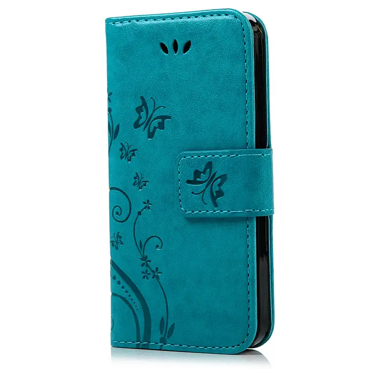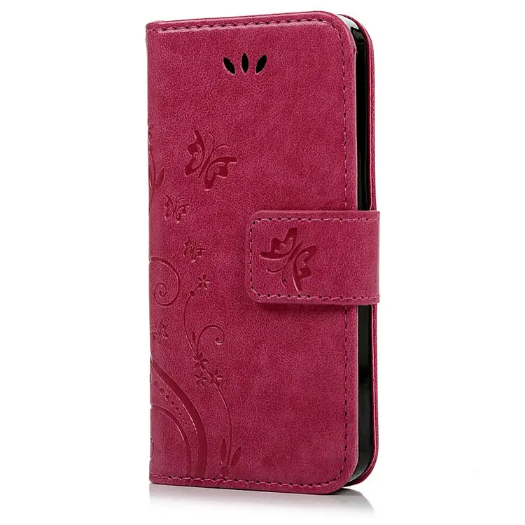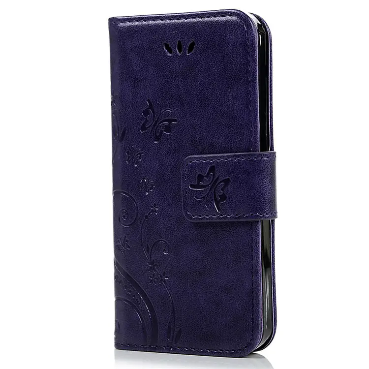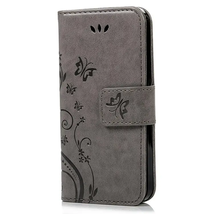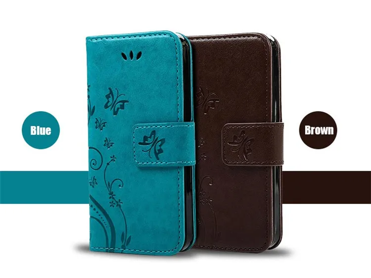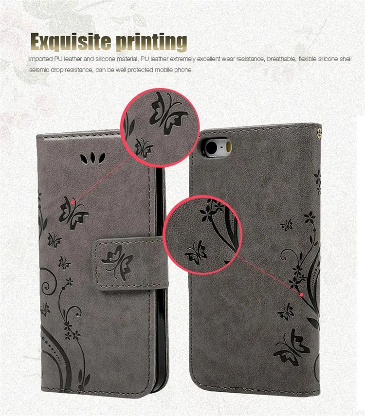 Features:Flower Butterfliy Printing Front Buckle Flip Stand Leather Case