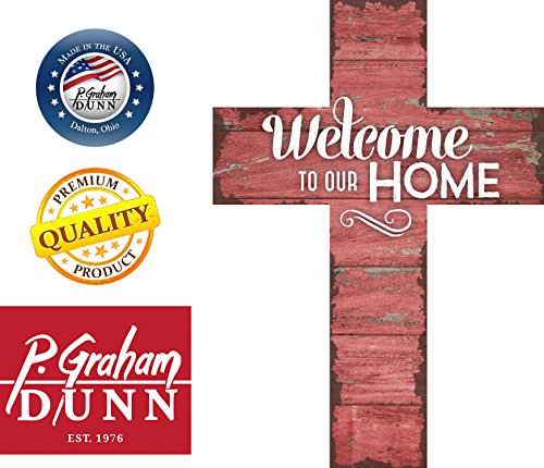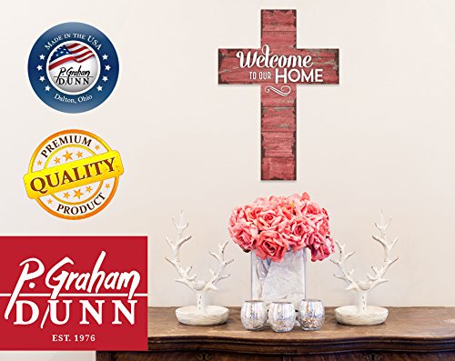 Welcome to Our Home Distressed Red 12 x 9 Wood Wall Art Cross Plaque