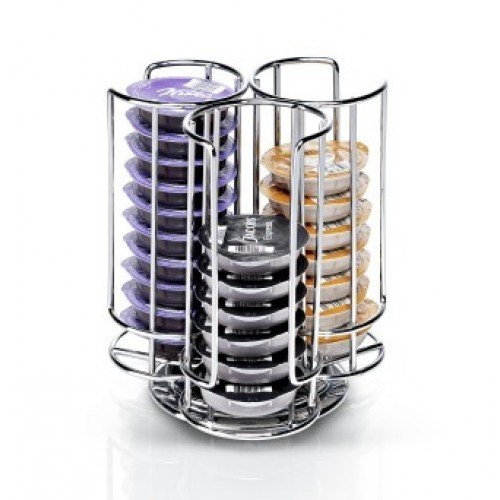 -. Feature : Kaffeezubehör Ständer für Tassimo T-Discs / In drei Säulen bietet der Edelstahl-Ständer Platz für 30 T-Discs. / Ein verchromter Drehfuß am Boden bietet besonderen Komfort zum Entnehmen der T-Discs. / 18 cm