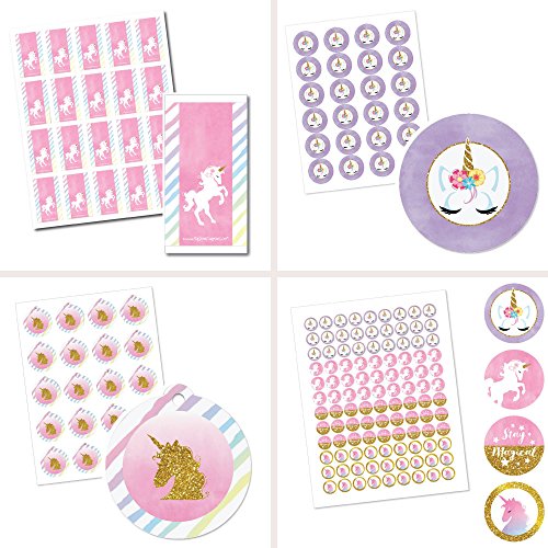 - MADE IN THE USA: Rainbow Unicorn - Magical Unicorn Baby Shower or Birthday Party Decorations Favor Kit - Party Stickers & Tags are designed and manufactured at our Wisconsin facility using materials that are Made in the USA.