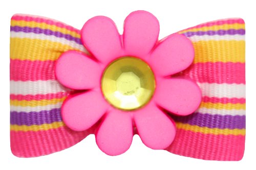 -. Binding : Misc. -. Brand : Hot Bows -. Color : pink, yellow -. EAN : 0819745010157 -. Feature : Hot Bows are original designs; Fun, fashionable hair bows for pets; Most Hot Bows are stiffened with a special non-toxic stiffener / Made for extended wear -Trendy styles and high quality products; Made in the USA / 2 Latex Bands; for experienced users, i.e. groomers; They are easy to use, but if your dog doesn't sit still a clip will be easier for you to use / The French Clip is easy to open and for dogs that have thick hair or already have a band in their hair (i.e. Shih Tzu or Poodle) / No-Slip French Clips are easy to open; an added piece of Velcro prevents the clip from slipping off the straighter hair (i.e. Yorkie or Maltese) -. Label : Hot Bows -. Manufacturer : Hot Bows -. Model : BLMNG10LB -. MPN : BLMNG10LB -. PackageQuantity : 1 -. PartNumber : BLMNG10LB -. ProductGroup : Pet Products -. ProductTypeName : PET_SUPPLIES -. Publisher : Hot Bows -. Studio : Hot Bows -. Title : Hot Bows Bloomin' with 2 Latex Bands for Dogs -. UPC : 819745010157