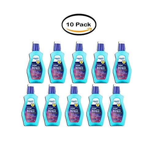 -. Binding : Misc. -. Brand : Equate -. EAN : 0654163986017 -. Feature : Multi-action with fluoride / No burn of alcohol / Alcohol-free oral rinse helps prevent cavities, kill bad breath germs, freshen breath and strengthen enamel -. IsAdultProduct : 0 -. Label : Equate -. LegalDisclaimer : Actual product packaging and materials may contain more and different information that what is shown on our website. we recommend that you do not rely solely on the information presented that you always read labels, warnings and direction before using and consuming a product. -. Manufacturer : Equate -. MPN : 1000040397 -. PartNumber : 1000040397 -. ProductGroup : Beauty -. ProductTypeName : BEAUTY -. Publisher : Equate -. Studio : Equate -. Title : PACK OF 10 - Equate Alcohol Free Refreshing Mint Anticavity Oral Rinse, 33.8 Oz -. UPC : 654163986017