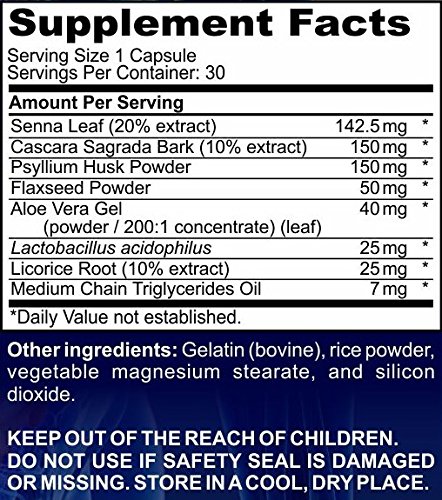 ALL NATURAL & SAFE Colon Cleansing: A Total Advanced Complex blend of 100% Pure Natural ingredients, like Psyllium Husk, Cascara Sagrada, Senna Leaf, Flaxseed & Aloe Vera Gel. While Gently Cleansing the Digestive Tract It Aids in Digestion & Cleans the Gut.