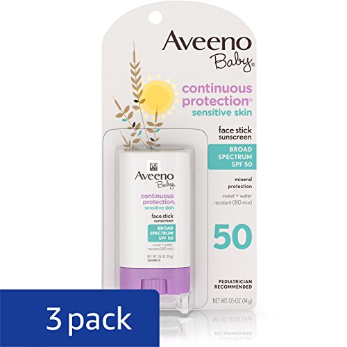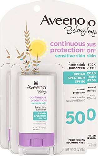 Aveeno Baby Continuous Protection Sensitive Skin Face Sunscreen Stick with Broad Spectrum SPF 50 contains Mineral Guard Technology with naturally sourced sunscreen ingredients. Formulated with Active Naturals Oat, titanium dioxide and zinc oxide, this broad-spectrum baby sunscreen forms a protective barrier on top of the skin that absorbs and scatters UV rays for superior sun protection. Oil-free and sweat and water resistant for 80 minutes, it helps keeps your baby's sensitive skin happy and is gentle.