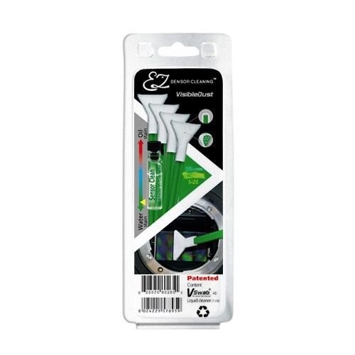 VDust Plus Formula, with its multi ingredients formula, cleans the sensor from all kinds of contamination preventing sensor surface friction and static build up, resulting in crystal clear images. Its anti-friction ability provides a safer and smoother cleaning process reducing potential risk to the sensor. Most alcoholic formulas such as Methanol are designed to remove oil from optical surfaces. However, they are unable to remove or dissolve protein contamination. At the same time they contribute to surface friction and static build up. It is known that during the cleaning process water molecules act as lubricant on the sensor reducing the friction and static built up. Therefore, it is highly recommended to use VDust Plus Formula for its cleaning power and sensor protection. Sensor Swabs, Green: This ultra thin multi fiber fabric has a patented folding design to create a softer edge compared to a hot sealing process, yet designed to be compatible with a wide range of our solutions (VDust Formula, Sensor Clean, Smear Away). The patented mini-channel, with contour, provides an even saturation of the paddles surface while preventing pooling and vertical flow at the edge. This reduces streaks associated with traditional flat surface paddles. The mini-channels also provide the extra reservoir to absorb the excessive liquid and prolonging the moisture life of the swab during the cleaning process.Feature