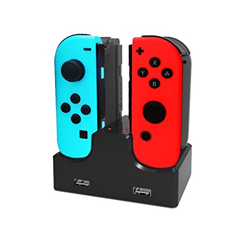 -. Feature : Exclusive Designed : Specifically designed for Nintendo Switch Joy-Con controller charging station and you deserve it. Enjoy Nintendo Switch, enjoy your life. It can be charged for 4 Nintendo Switch Joy-Con controllers at the same time. / Charge and Storage : You can use it to charge and storage your Nintendo Switch Joy-Con controller. Two USB interface for other devices to charge, such as mobile phones, other game devices and USB devices can be connected. / Portable and Material : The durable ABS body ensures reliability and portable design, easy to carry. With 80cm USB plug-in charging cable. / Practicability : Beautiful, innovative and easy to use. Simply and easily to use and easily pack away when not in use. Individual LED indicate charge level for each Joy-Con. Charging the blue light will light, to be filled with blue light will be directly off. / To see other accessories for the Nintendo Switch. Please click on our store.