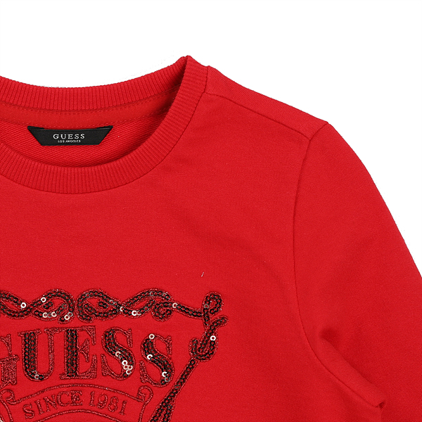 미니쮸리 소재의 레드, 라이트퍼플 2가지 컬러의 맨투맨티셔츠로