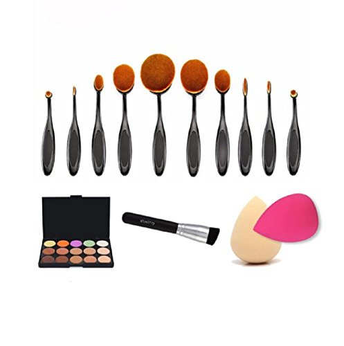-. Title : Makeup Brushes Set,10PCS Toothbrush+1PC Powder brush+15 Colors Concealer Palette+2 PCS Sponge Puffs