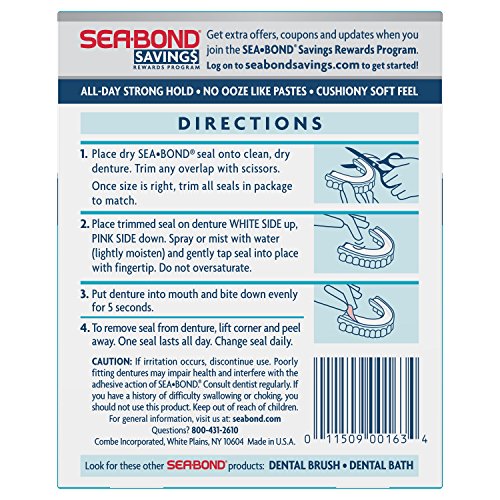 ReleaseDate : 2014-03-09 Studio : Combe Inc. Publisher : Combe Inc. Binding : Health and Beauty Product Description Get the extra confidence you’re looking for. Sea Bond Denture Adhesive works differently. The cushiony, soft seal gives you all day hold without the ooze and mess of denture pastes. And it’s zinc-free. Now you can wear your dentures comfortably all day and still feel like yourself. 0