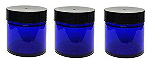 1 Ounce Cobalt Blue Glass Jars with Black Twist Lined Lid [Pack of 3]