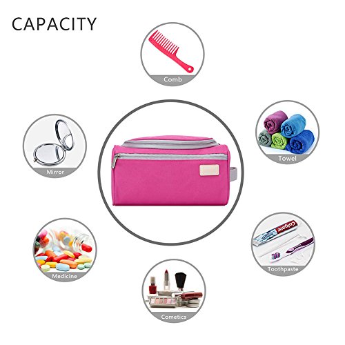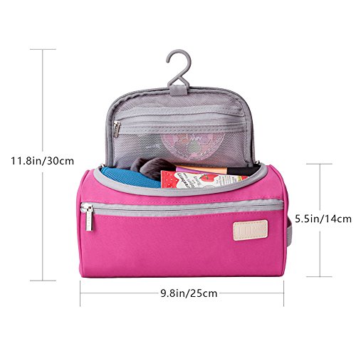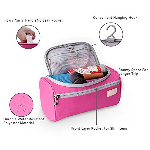 - 【PREMIUM QUALITY 】Say good bye to old broken zipper, ripped hook and harsh chemical smell! This bag made of 300d high density waterproof fabrics and high-grade pu leather pull head, with the useful hanging hook, exquisite stitching, excellent zipper and a convenient side strap to ensure your toiletry bag long lifetime!Besides, the polyester material makes the whole bag more stereoscopic.