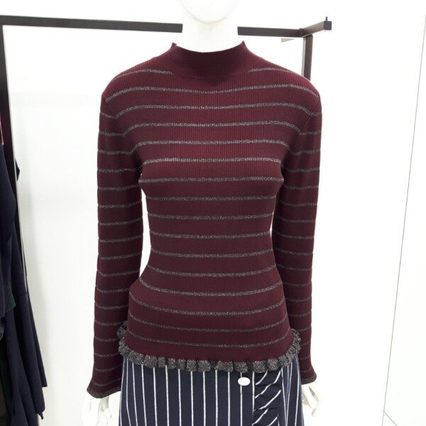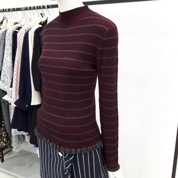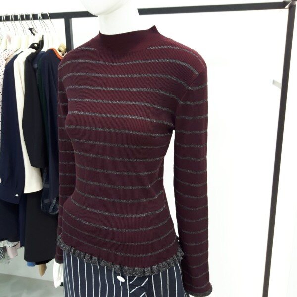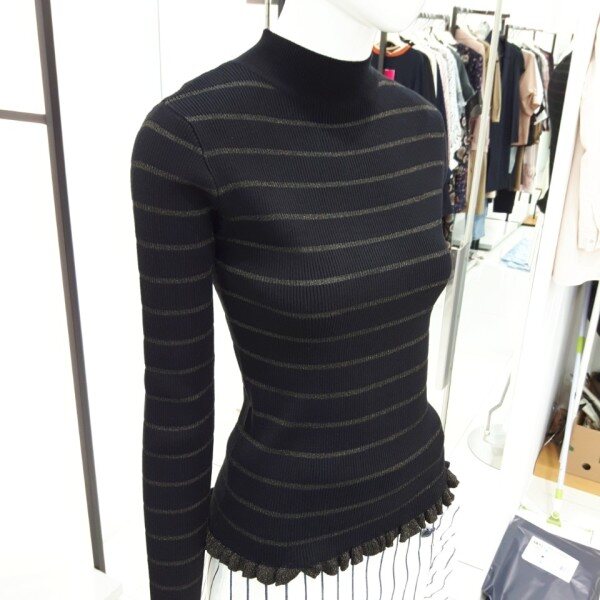 ★상품 설명★잔골지에 퍼가 들어간 밑단너플 니트입니다 입는핏감은 편하구요 반목이라 겨울까지 이너로입기좋은제품입니다