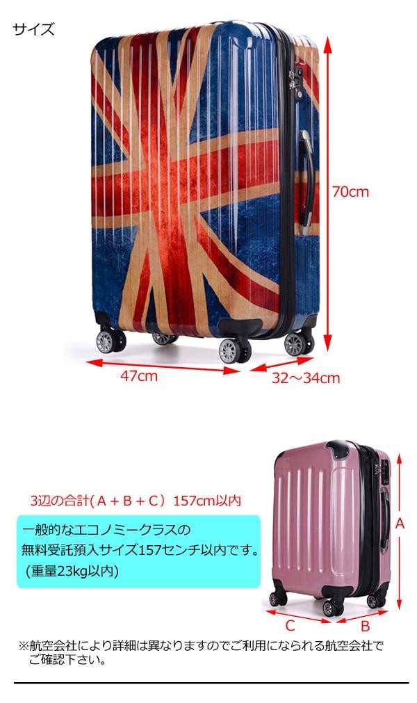 | 仕様 | 容量:約80~90L 拡張機能 キャスター8輪(Wキャスター×4) TSAロック搭載 無料受託預入サイズ(157センチ以内) |