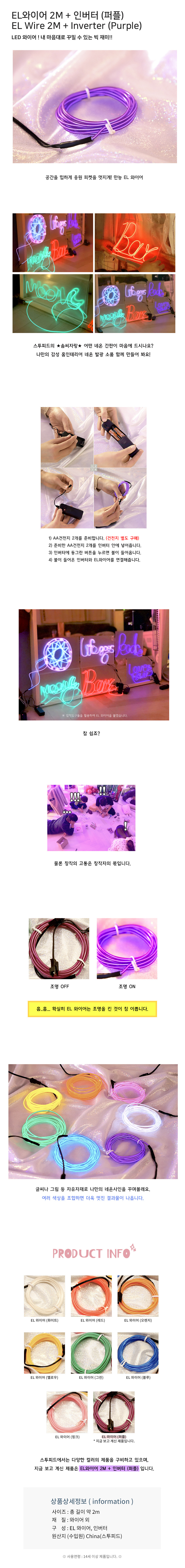 EL 와이어 2M + 인버터 (퍼플)