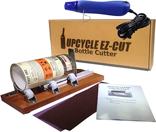 Glass Bottle Cutter (Deluxe) Kit, Upcycle EZ-Cut: Beer & Wine Bottle Cutting + Edge Sanding Paper & Heat Tool
