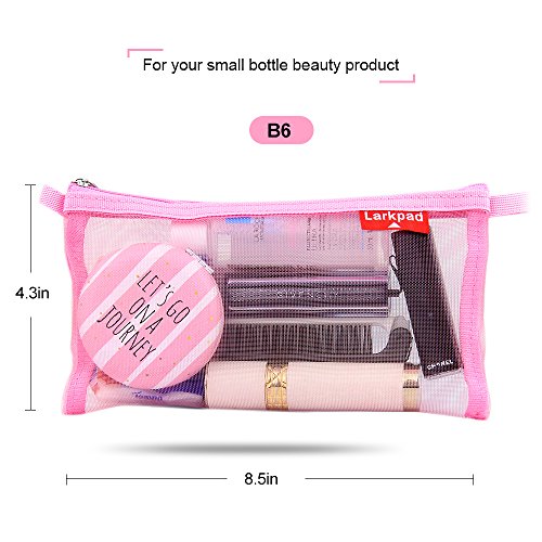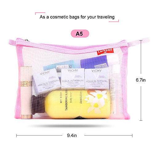 3-Pack Clear Mesh Zipper Bags, A5, B6 Size Pouch for Cosmetics or Stationary, Pink by Larkpad