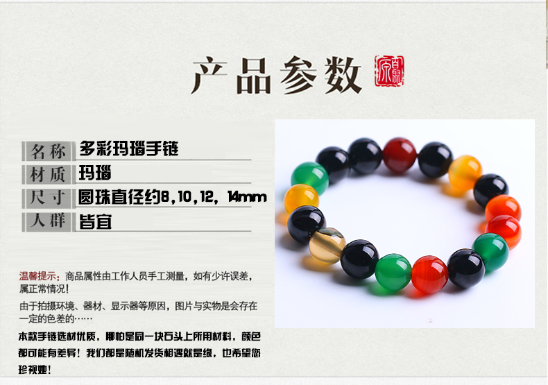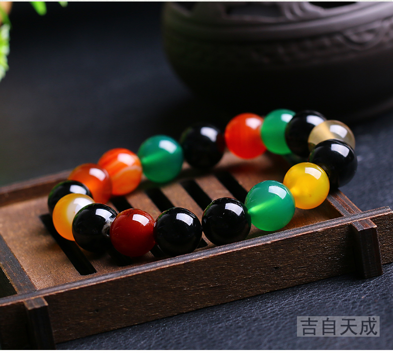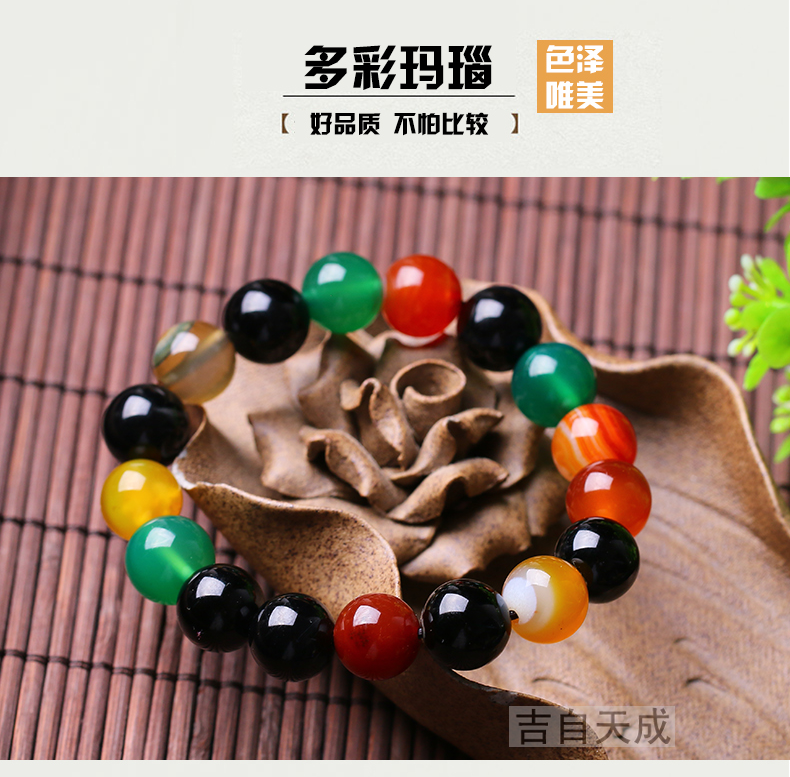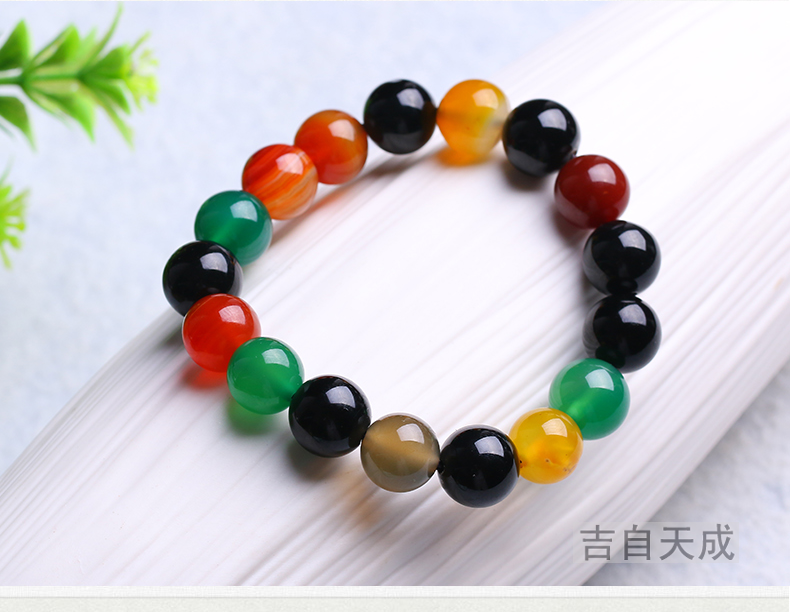 多彩玛瑙手链混色搭配玛瑙时尚情侣水晶饰品女男礼物