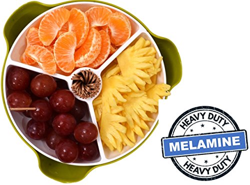 Product Description Serving bowl with waste collection dish. ? Main serving dish with compartments for a variety of snacks. ? Cocktail stick/toothpick holder. ? Integrated collection dish for collecting and hiding food waste. ? Made from 100% food grade melamine; Dishwasher safe. ? Separate bowls for fruit/nuts and their peels. ? Excellent to reduce mess when you have guests. ? Looks very neat, a must have product! 0