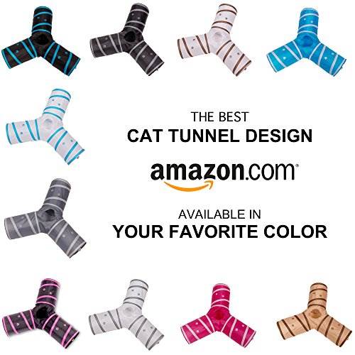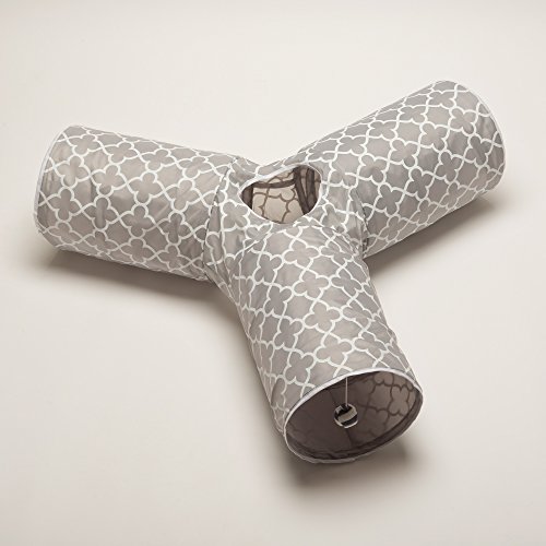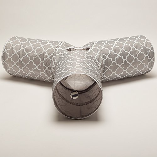 Give your cat hours of entertainment and exercise with this fun, collapsible 3-way cat tunnel. Featuring a variety of "bells whistles," it's the purr-fect playground for high-energy felines! You adore your cat, but let's face it: you don't have a lot of time to play with him during the day. Luckily, with the Prosper Pet 3-Way Cat Tunnel, your kitty can entertain himself for hours! This unique playtoy is three spacious tunnels in one, giving your cat more room to roam, pounce, and hide than other single tunnels. Unique details like a peephole and swinging bell toy crank up the fun for your feline. One of the tubes is lined with crinkly/crackly material that your cat will find irresistible! This tunnel features a sleek black design with pink accents - no obnoxious loud prints. It's made of durable 190T polyester that resists snagging and tears, even from sharp kitty claws. The rugged steel frame helps maintain the tunnels shape over time, with covered ends to keep your cat safe from pokes. Best of all, our cat gym is completely WASHABLE! The Prosper Pet 3-Way Cat Tunnel collapses into a compact size, so it's easy to take the fun with you anywhere - whether you're dropping Fluffy off at the sitter's or traveling cross-country. A great Christmas or birthday gift for cats their owners! * 3 tunnels in one - more entertaining for your cat or kitten * Includes swinging bell toy * Features peep hole in middle * 1 tube lined with crackling paper * Durable, washable polyester * Polyester doesn't collect pet hair * Strong sprung-steel frame w/protective ends * Collapses for easy travel storage Click "Add to Cart" to buy now! 0 |