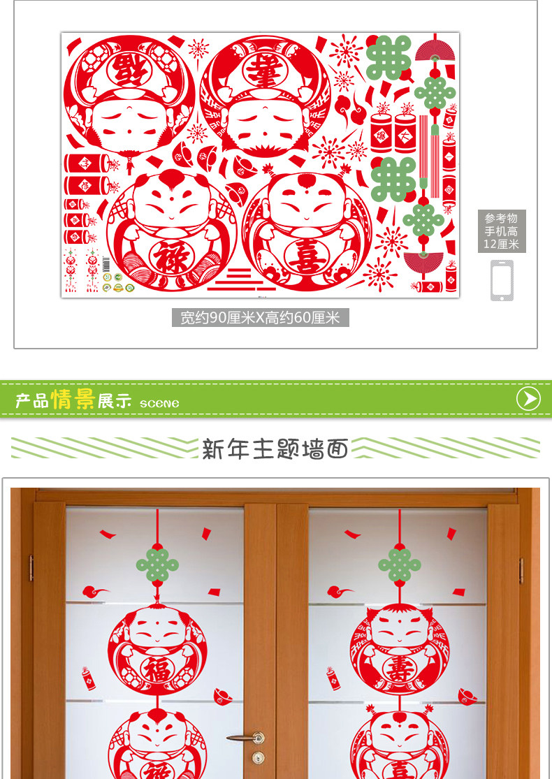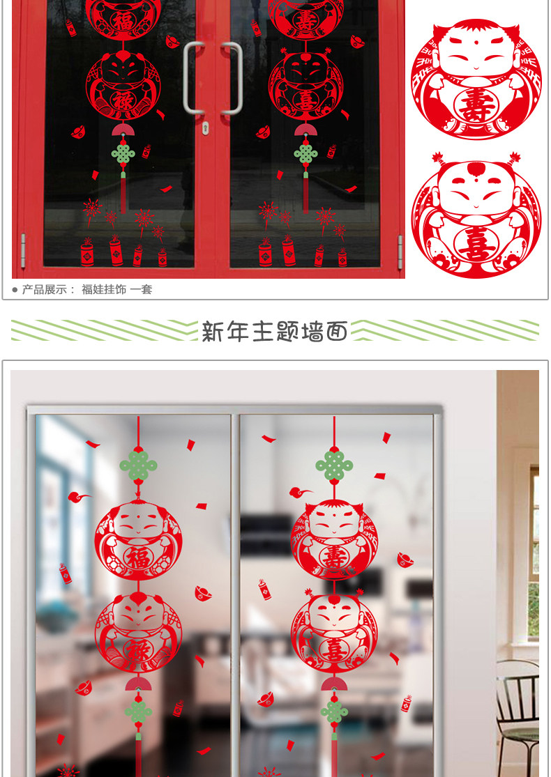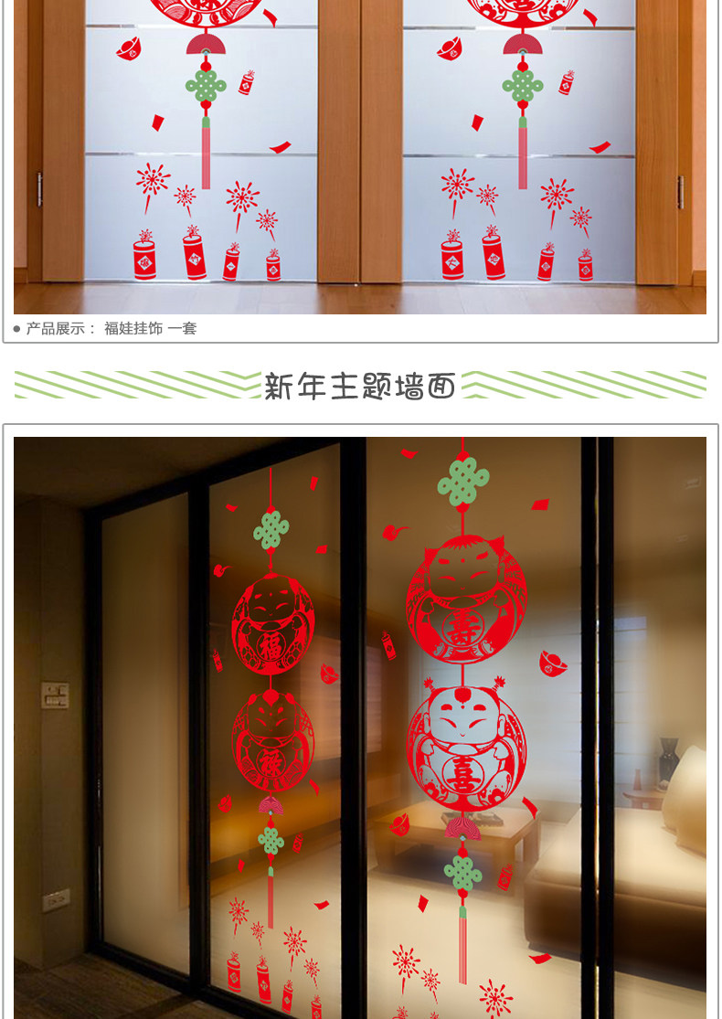 新年元旦墙贴商场店铺橱窗户玻璃贴喜庆春节贴画壁画贴