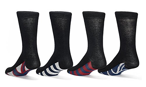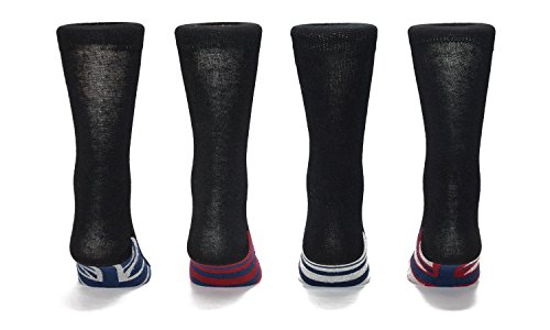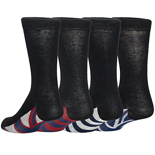 -. Binding : Apparel -. Brand : ACTIV PRO -. Color : Black Union Jack -. Department : mens -. Feature : Breathable: Keep feet dry and comfortable. Its cotton fiber allows air to circulate and move freely. / Long-lasting: Elastic, durable socks with toe and heel reinforced with high-quality cotton/nylon blend. / For all occasions: Versatile distinctive classic styles for casual, business, wedding, formal or dress wear. / Fits men's shoe size 8-12 (Sock Size 10-13 | US Men Shoe Size: 8-12) / 61% Cotton / 38% Nylon / 1% Elastane | Mid Calf Length (Approx. 10" Shaft Height) -. IsAdultProduct : 0 -. Model : MSC04 -. PackageQuantity : 4 -. ProductGroup : Apparel -. ProductTypeName : SOCKSHOSIERY -. Size : 10-13 -. Title : Men's Union Jack Black Dress Socks (Pack of 4)