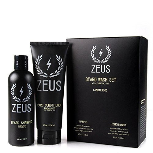Zeus Beard Shampoo and Beard Conditioner Set for Men - (8 oz. Bottles) (Scent: Sandalwood)