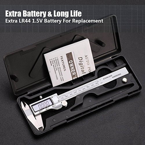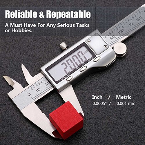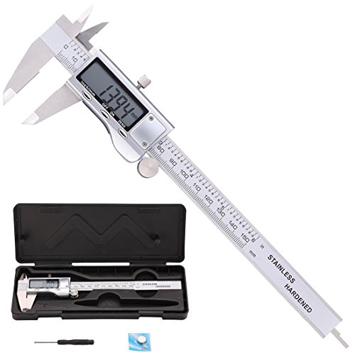 Electronic Digital Caliper Inch/Metric Conversion 0-6 Inch/150 mm Stainless Steel Rugged Body Gauge Micrometer By RexBeTi, Perfect for 3D Printer, Woodworking, Hobby Measuring Tool