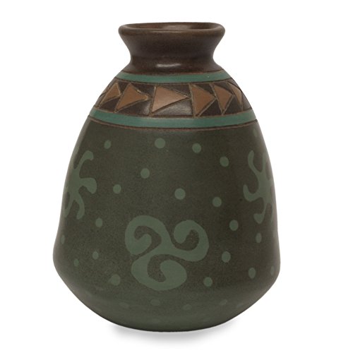 NOVICA Aztec Ceramic Vase, Green, 'Aztec Stars'