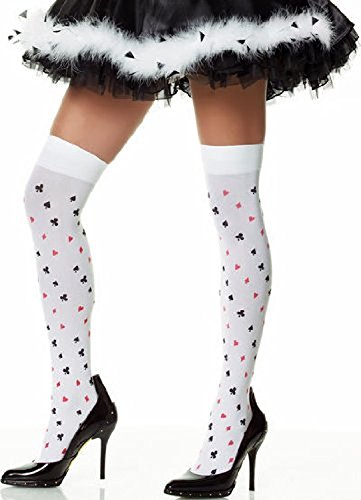 -. Binding : Apparel -. Brand : Leg Avenue -. Color : White -. Department : womens -. Feature : these look great with costumes or on their own / they look great with boots too -. Genre : Hosiery & Leg Warmers -. IsAdultProduct : 0 -. Label : Leg Avenue Costumes -. Manufacturer : Leg Avenue Costumes -. ProductGroup : Apparel -. ProductTypeName : ADULT_COSTUME -. Publisher : Leg Avenue Costumes -. Studio : Leg Avenue Costumes -. Title : Leg Avenue Women's Thigh-Hi Socks With Card Symbols