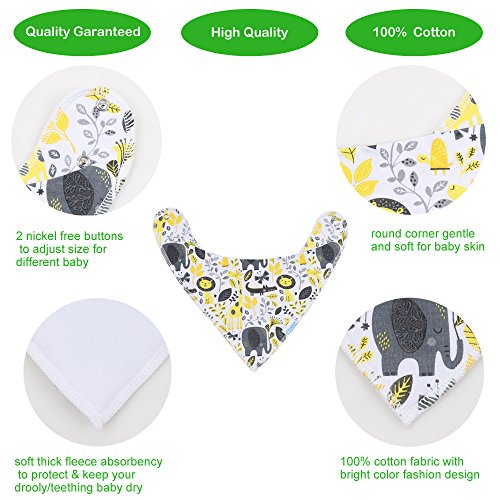 -. Binding : Apparel -. Brand : e-SMAK -. Color : Multiple -. Department : unisex-baby -. EAN : 0612292190057 -. Feature : ULTRA SOFT COTTON BANDANA DROOL BIBS - 100% organic cotton and hypoallergenic drool bibs on the front layer with P.R.Inted design, thick polyester fleece on back layer. The super absorbent drool bibs will keep your drooling and teething adorable baby dry from all dribble and spit ups and Save on changing your baby's clothes. 2 adjustable nickel free metal snaps will allow you to adjust the perfect size that fits your baby from 3 - 36 months. / 10-PACK BOX - Our stylish pack contains 10 different trendy P.R.Inted bandana drool bibs that suits boys and girls babies. The diverse of colors selection in our pack may complete your lovely baby outfit. We care for your sweet baby therefore we added a surP.R.Ising gift inside the pack. ENJOY IT. / PACIFIER CLIP BONUS GIFT - The pacifier clip will hold pacifiers or teething toys close to your baby. Besides it will keep the pacifier clean and ready to use. No more baby cry and tears while looking for the pacifier. GET IT AS A FREE GIFT. / 100% CUSTOMER SATISFACTION - We believe that babies are the most important thing in the world for their parents, therefore we offer you a high quality product with great material use and hard packing, therefore it will meet your requirements and expectations. YOU WILL NOT BE DISSAPOINTED. / 100% MONEY BACK GUARANTEED - Because we look after our customer's satisfaction, but if for any reason you are not 100% satisfied with our product, simply just let us know and we will refund your money with no questions asked. So give it a shot and add it to your cart today! -. IsAdultProduct : 0 -. ProductGroup : Baby Product -. ProductTypeName : ACCESSORY -. Size : One Size -. Title : e-SMAK 10-Pack Ultra Soft Baby Bandana Drool Bibs for Drooling and Teething - 100% Natural Organic Cotton, Super Absorbent, Hypoallergenic - Unisex Multicolor Set, SurP.R.Ising Gift, Enjoyable Quality -. UPC : 612292190057