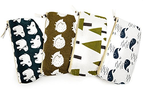 Ilyever 4 Pack Cotton Linen Cloth Pen Bag Pencil Case Bag School Stationery Organizer Cosmetic Makeup Bag Pouch Handbag 7.7x3.3x1.4inch (Forest and Animals)