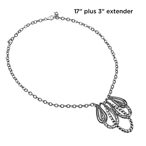 If you're looking for a statement, you've come to the right place. This necklace features loops of sterling silver rope design and signature swirls. Wear alone for a fabulous look or step it up by adding your favorite enhancer to the bottom loop or charms made for the necklace.