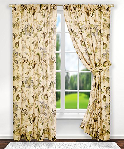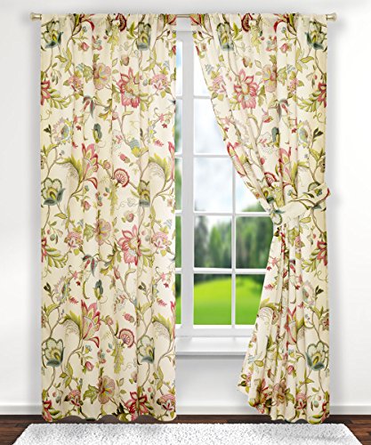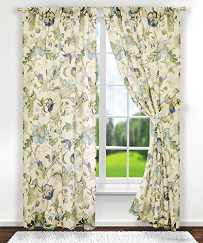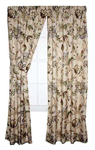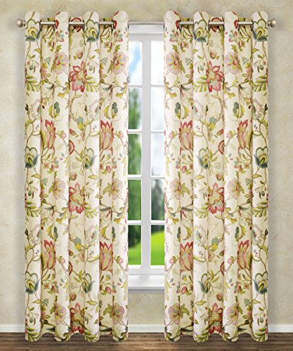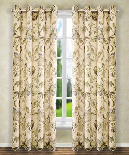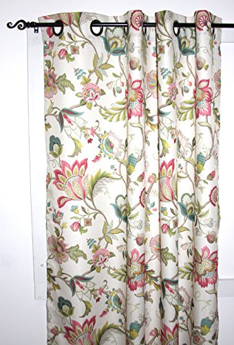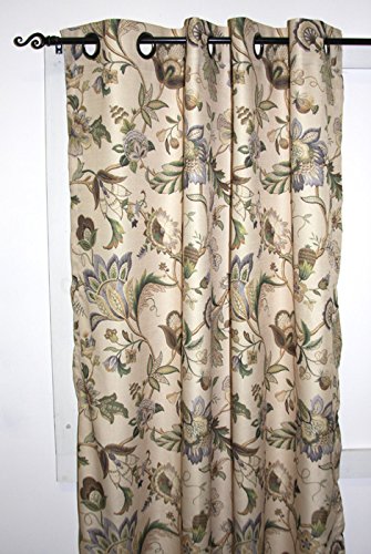 Classic Jacobean floral meets a stylish color pallet for this fashionable window treatment. Made with 100-percent polyester textured high quality fabric creates a smooth draping effect, soft feel, and easy care. Each panel is constructed with 8-grommets sewn into a 3-inch header, full natural colored liner and 3-inch finished bottom hem. Grommets measure 1 5/8-inches inside diameter and simply slide over your standard or decorative curtain rod making them one of the easiest curtains to hang. Sold as a single panel, width is measured overall 50-inches and length is 84-inches from header top to bottom panel. Use multiple panels to custom fit your needs. Easy care; machine washable.Feature