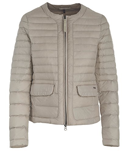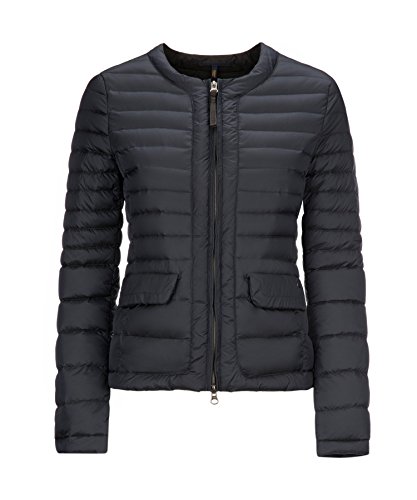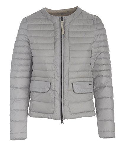 No collar light short down jacket. Zip closure, perfect for transitioning seasons.