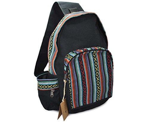 -. Title : Mato Boho Sling Bag Backpack Bohemian Tribal Woven Aztec Pattern Crossbody Single Strap Daypack Black