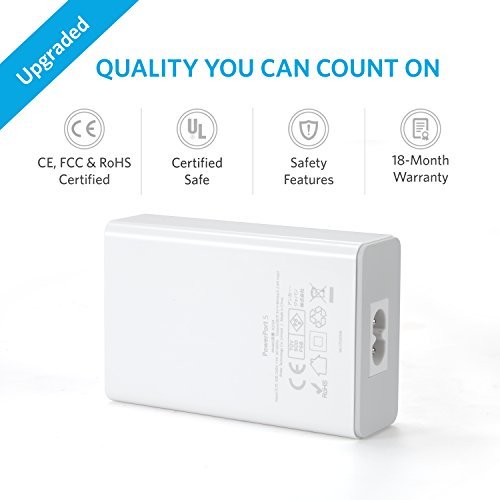 What You Get: Anker PowerPort 5 (40W 5-Port USB Charging Hub), 5ft detachable power cord, welcome guide, our fan-favorite 18-month warranty and friendly customer service.