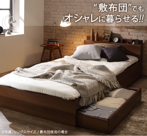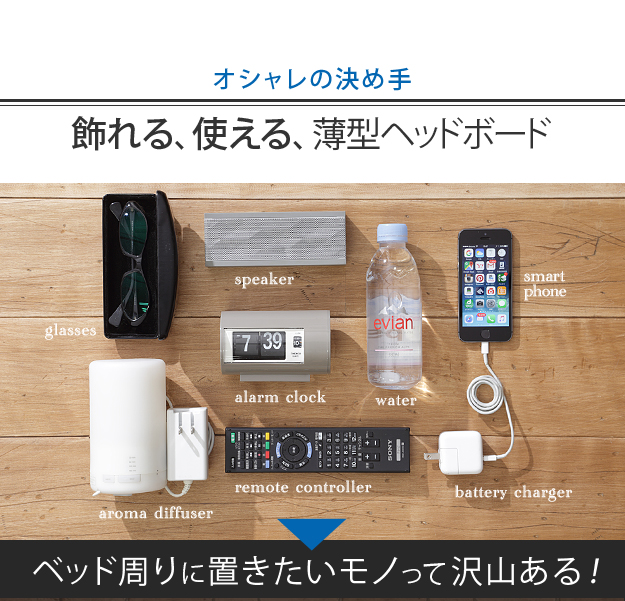 ●ベッドフレームのみ 省スペース スリムヘッドボード 2口 コンセントカバー