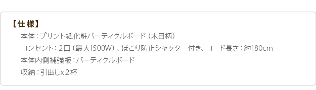 ●コンセント:2口(フタ付き)合計1500W