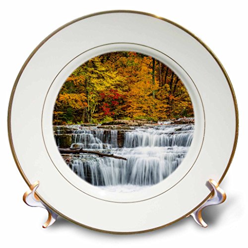 3D Rose Cataract Falls on Mill Creek in Autumn-Indiana-USA Porcelain Plate, 8"