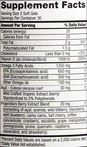 OmegaBerry Fish Oil with Vitamin D3 & Organic Acai - 60 Soft Gels - 30 Day Supply from Purity Products