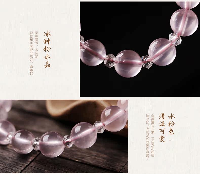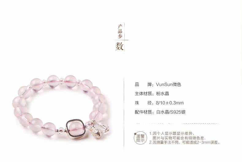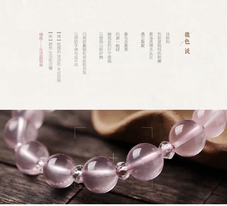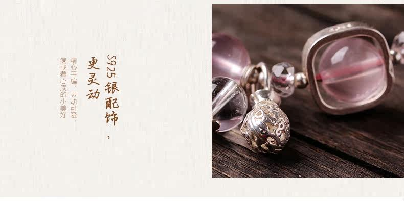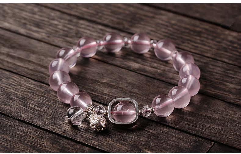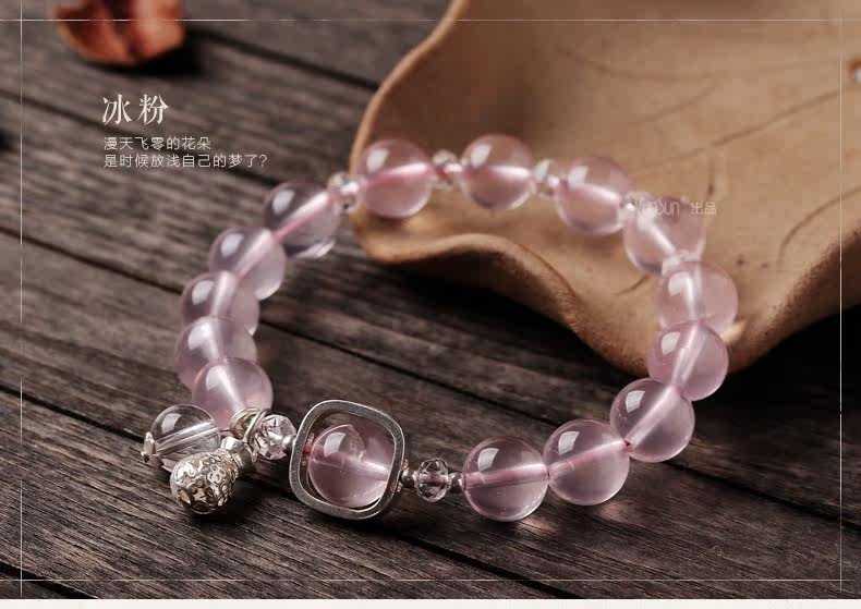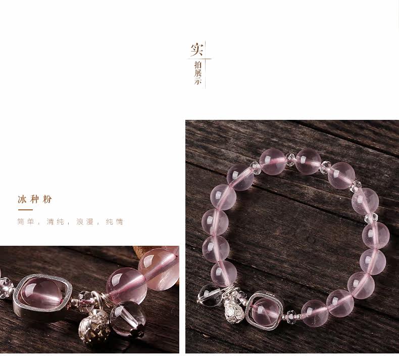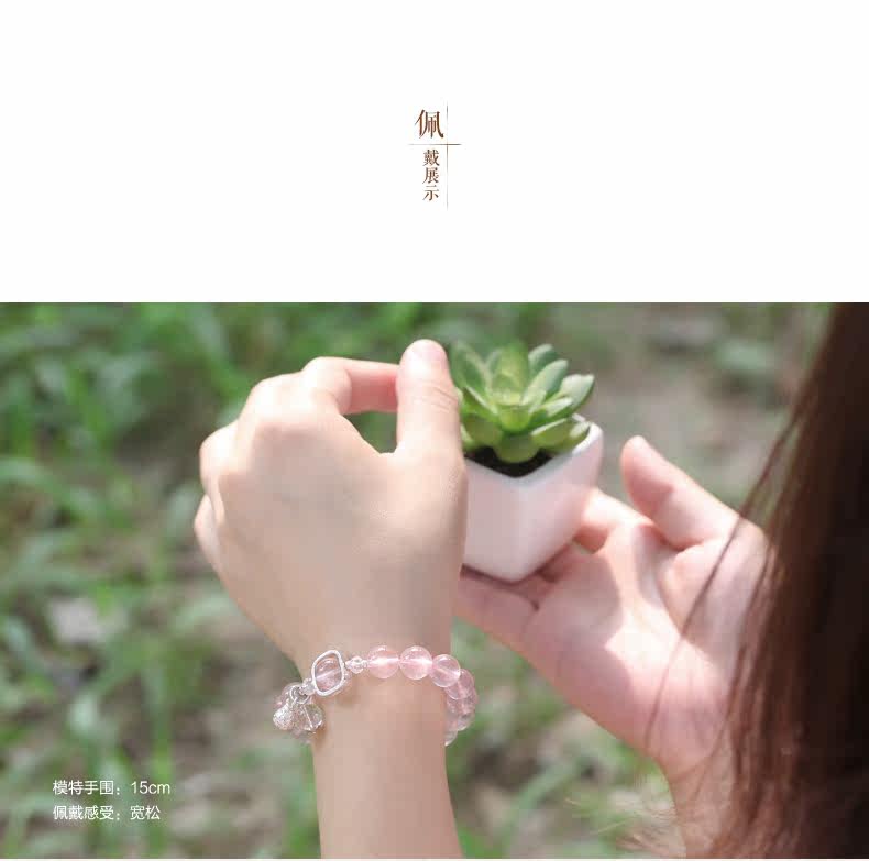 天然粉水晶手链女款单圈冰种粉晶手串925银甜美简约饰品