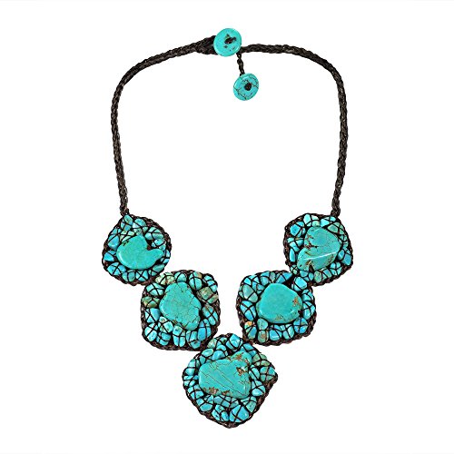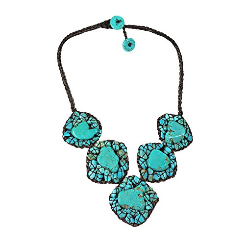 Something new, daring and exotic! Artisan Jeab creates this beautiful mosaic of simulated turquoise stones. This handcrafted piece gives a unique and bold element to your style. PLEASE NOTE: The handcrafted nature of this product will produce minor differences in design, sizing and weight. Variations will occur from piece to piece, measurements may vary slightly.Includes an original AERAVIDA organza jewelry pouch (comes in various colors), also handmade by our Artisans. Perfect for gift giving to someone special or keep for yourself!