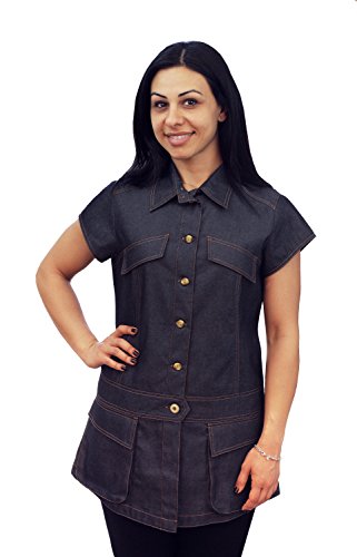 -. Title : ASD Living 3S-603 Blue Denim Short Sleeve Stylized Chef Coat,Blue Denim,Small