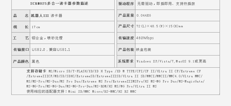 Audience: CF Card MD card MS card MS-PRO card SD card MMC card Mini-SD card RS-MMC card