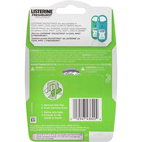 ReleaseDate : 2015-08-28 Studio : Listerine Pocketpaks Publisher : Listerine Pocketpaks Binding : Health and Beauty Product Description Refresh your mouth with Listerine Pocketpaks Breath Strips. These strips dissolve instantly, killing 99 percent of germs that cause bad breath.* Slip your pack into your purse or pocket, so you can easily freshen up after your morning coffee, or before a meeting or date. Each strip has a refreshing Freshburst flavor to leave your mouth feeling clean and fresh.*In laboratory tests. 0