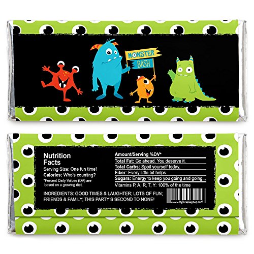 - Monster Bash - Candy Bar Wrapper Little Monster Birthday Party or Baby Shower Favors - Set of 24