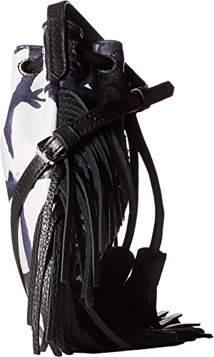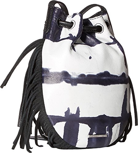 Made of tie-dye printed leather with fringe detail.