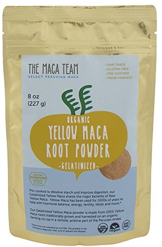 Gelatinized Yellow Maca is made from Yellow Maca roots, which make up about 60% off the annual harvest in Peru. These roots are pre-cooked to remove starch content and ease digestion. It takes about 4 kg of Raw Maca roots to produce 1 Kg of Gelatinized Maca powder, making it more concentrated than Raw Maca products. To date hundreds of studies, all available publicly in the Pubmed database, have found Yellow Maca to be useful for energy building, fertily, hormone balance, mental focus and more. Yellow Maca is indeed a nutritional powerhouse, containing nearly all essential amino acids and free fatty acids, significant levels of vitamins A, B1, B2, B3, and C, minerals iron, magnesium, zinc and calcium, a high concentration of bio-available protein and nutrients unique to Maca called macaenes and macamides. Maca is also an "adaptogen," or rare form of plant that is thought to raise the overall life force energy of those who consume it. The Maca Team, LLC is dedicated to preserving and sharing high quality Peruvian grown Maca with the world. As a family run company of Maca specialists, we're here to bring you the most Maca has to offer. We are proud to source and sell the best selection of high quality Peruvian Maca in the world. All of our products are always organically grown, fairly traded, GMO-free, fresh and potent. We sell 8 different kinds of certified organic Maca, raw and gelatinized (pre-cooked), in a variety of sizes, in vegan capsules and extracts. Please see our seller profile for more details and links to our products. Thank you for considering The Maca Team. Enjoy your day!Feature