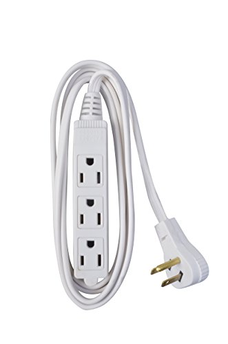 Coleman Cable 03517 Flat Plug Extension Cord, 16/3 Grounded with 3-Outlet Trinector Tap, 6-Foot
