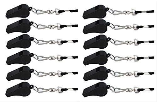 QTMY Plastic Sport Coach Emergency Whistles with Lanyard, Pack of 12